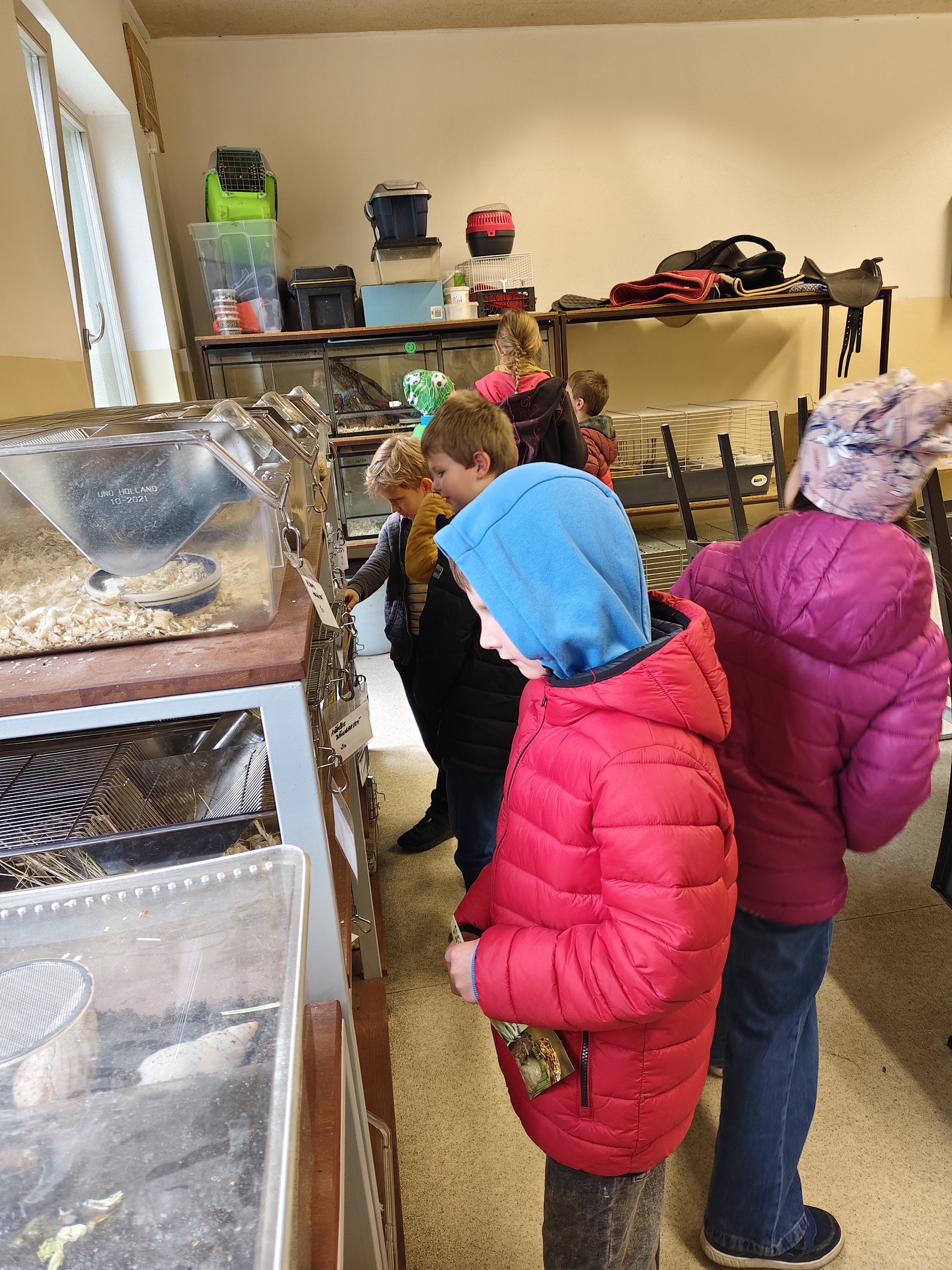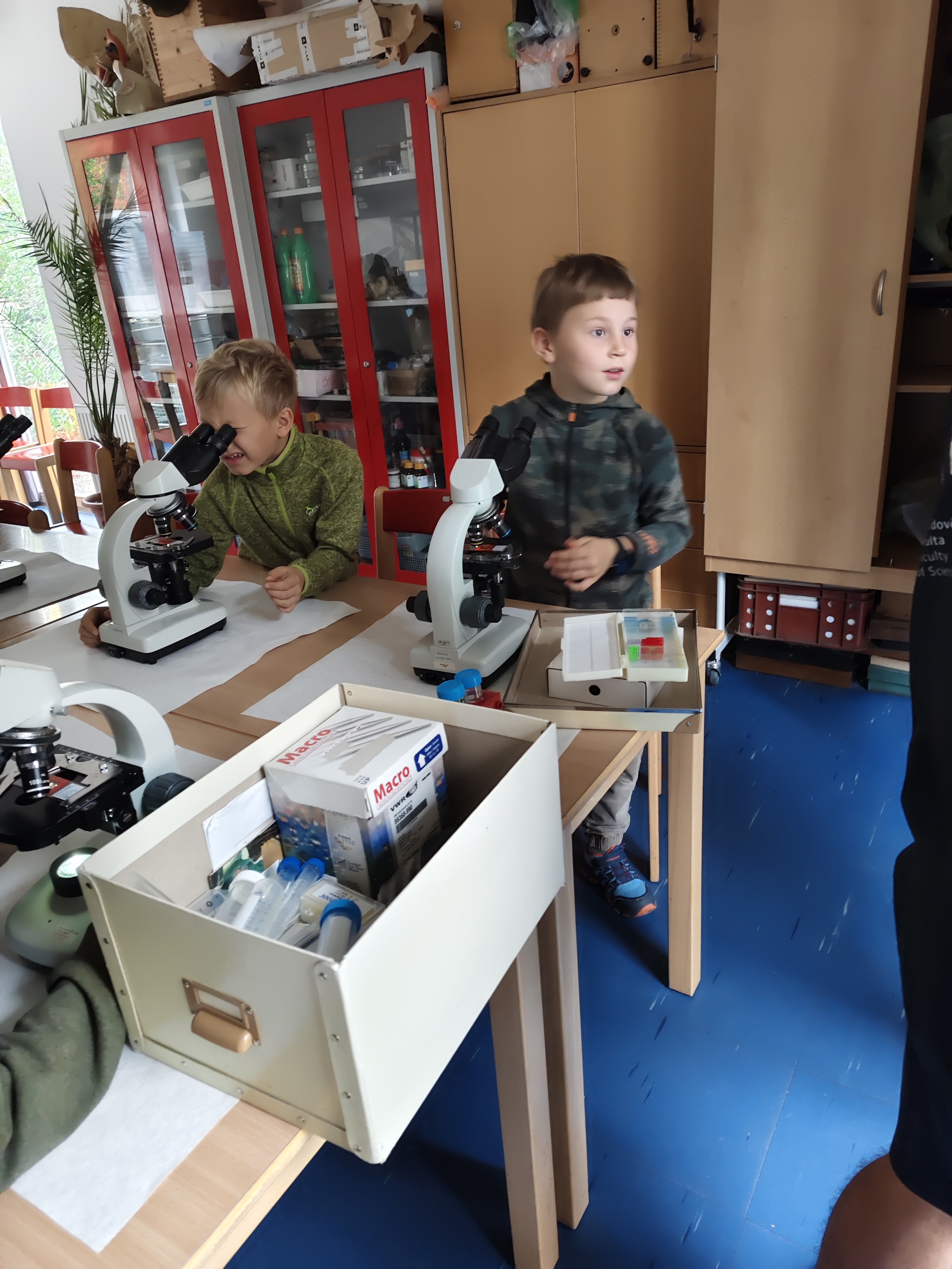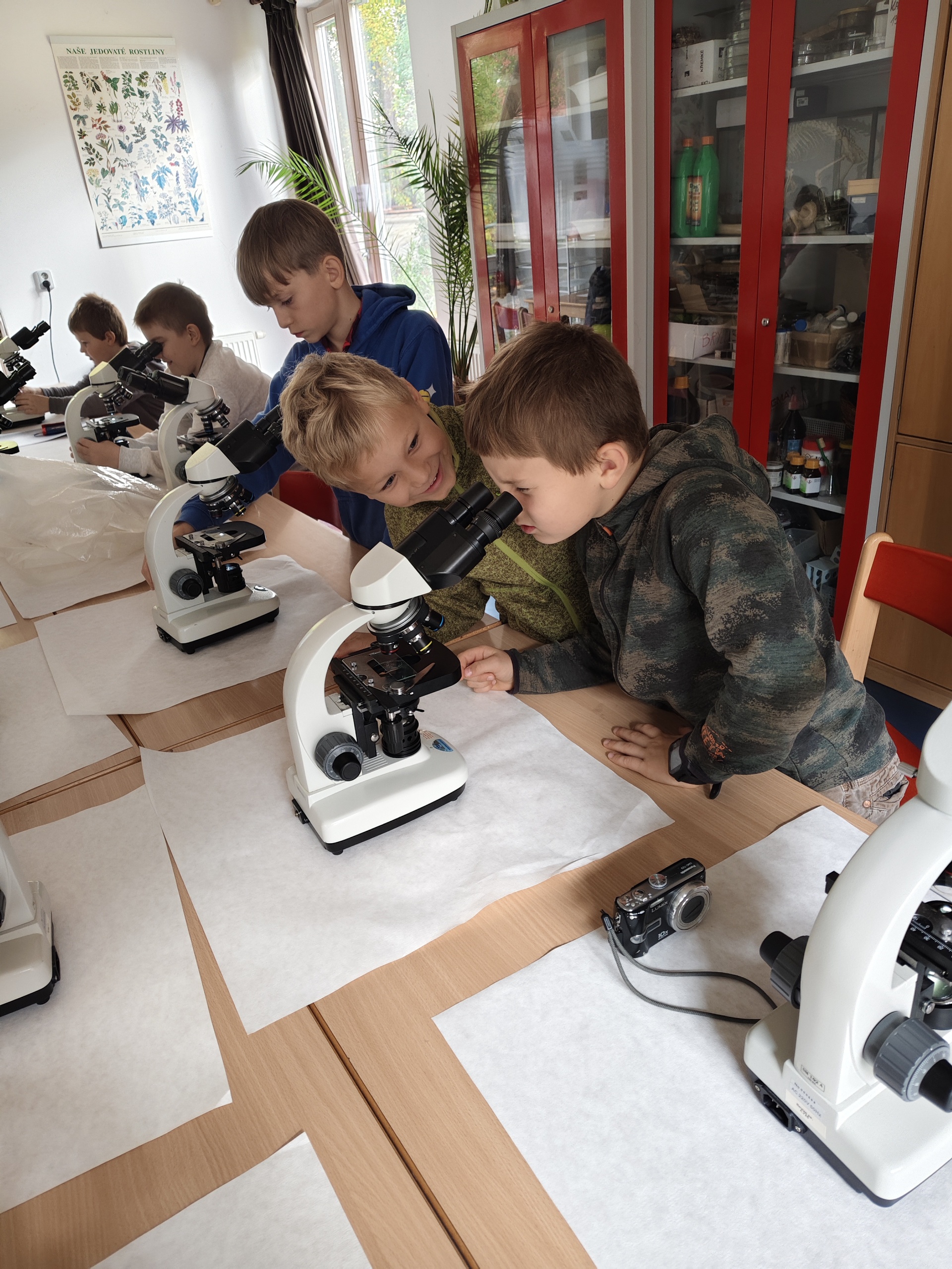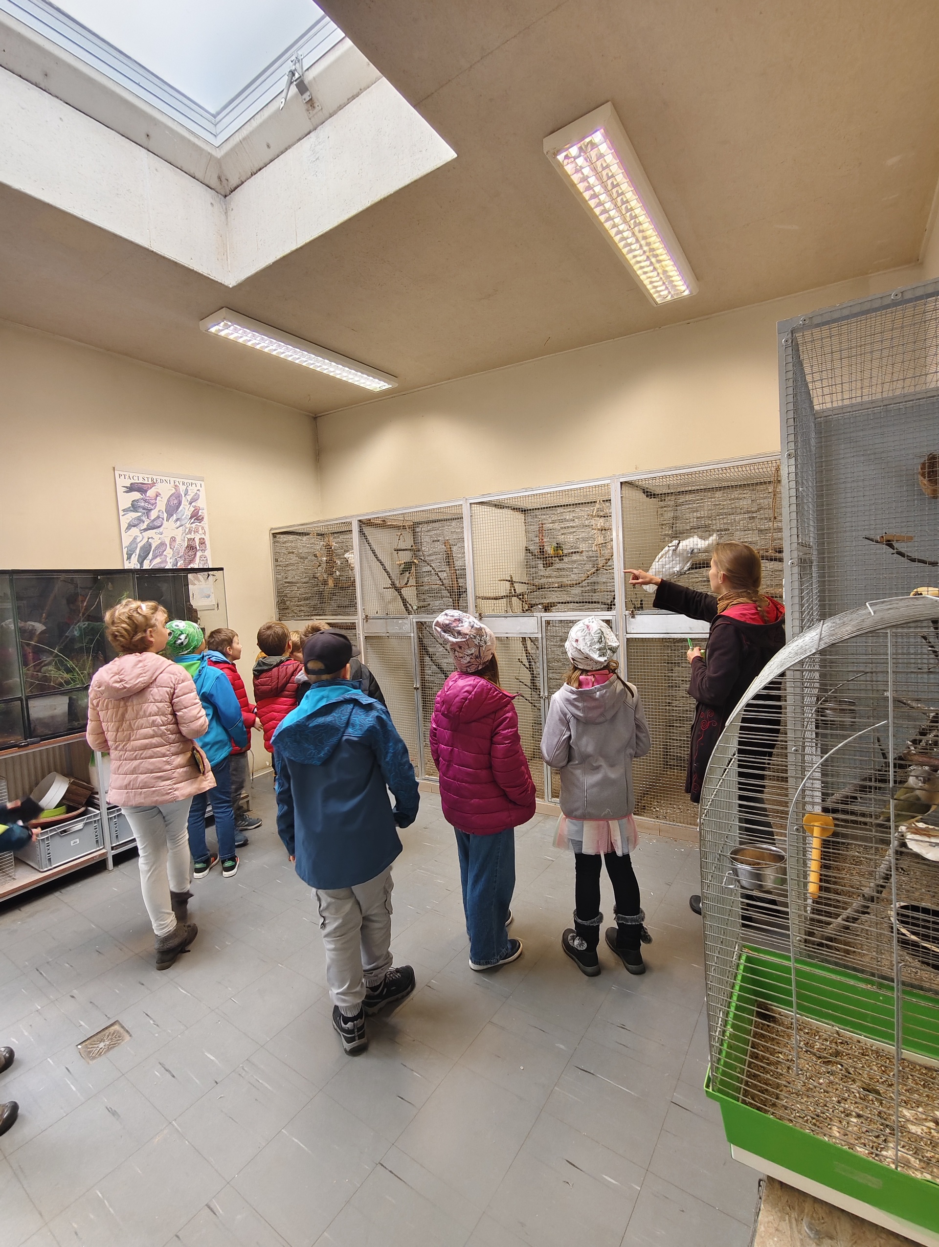Navštívili jsme Stanici přírodovědců na Andělu v Praze. První skupina se věnovala práci s mikroskopem, kde si žáci mohli prohlédnout velmi zblízka sinice, veš, klíště nebo roztoče. Učili se pracovat s mikroskopem. Druhá skupina mezitím absolovovala procházku po areálu. kde se děti dozvěděly zajímavosti o plazech, papoušcích, hraboších, hlodavcích. malých opicích a klokanech. Později se skupiny vyměnily.