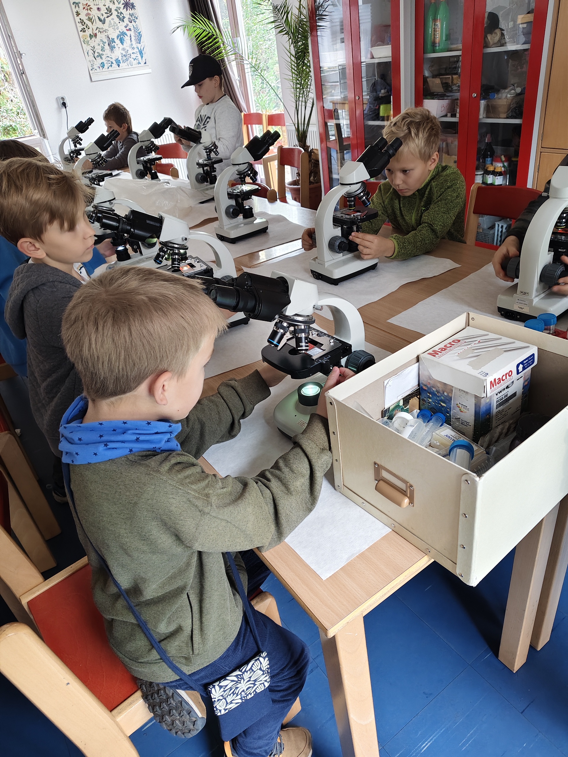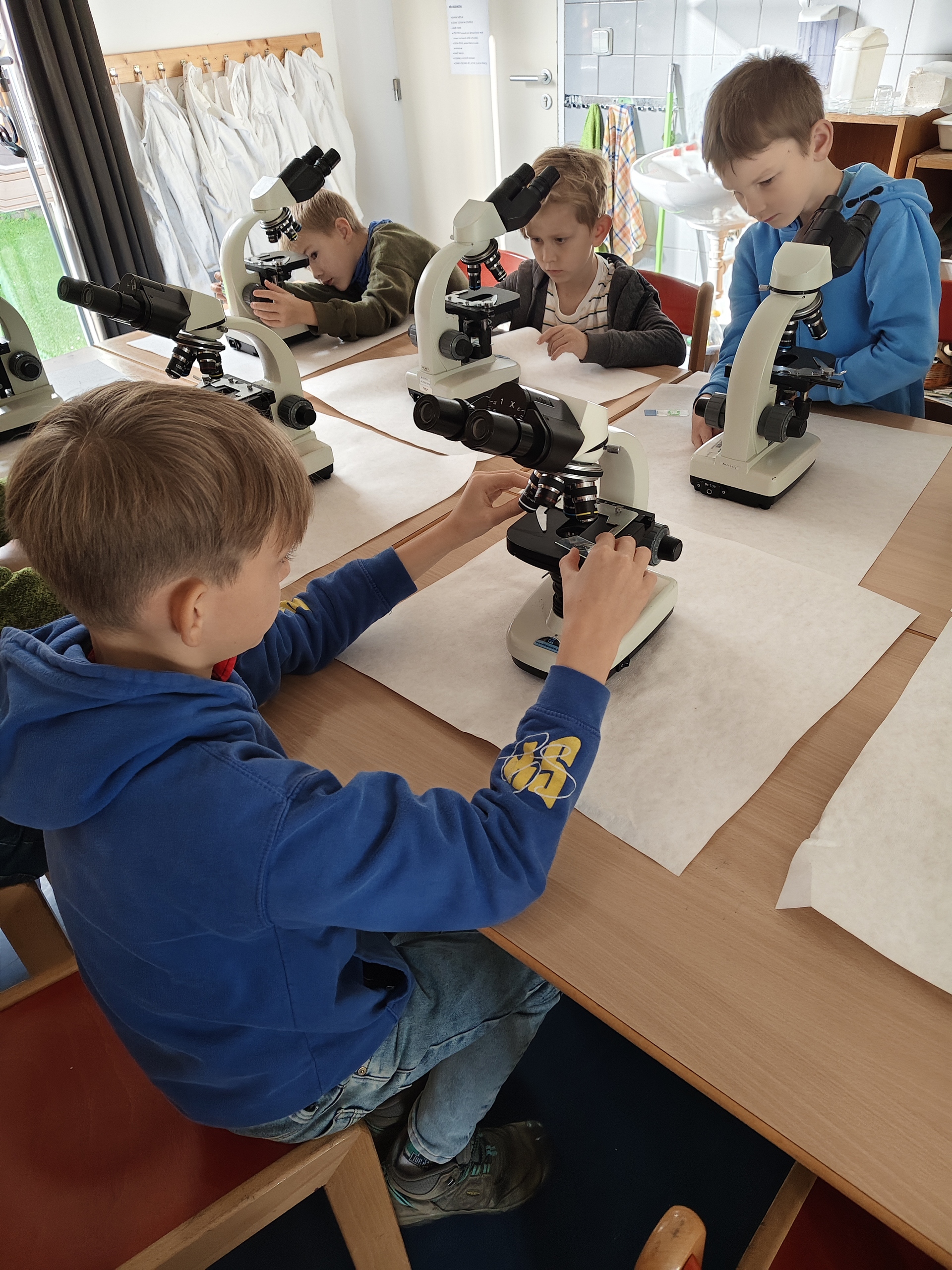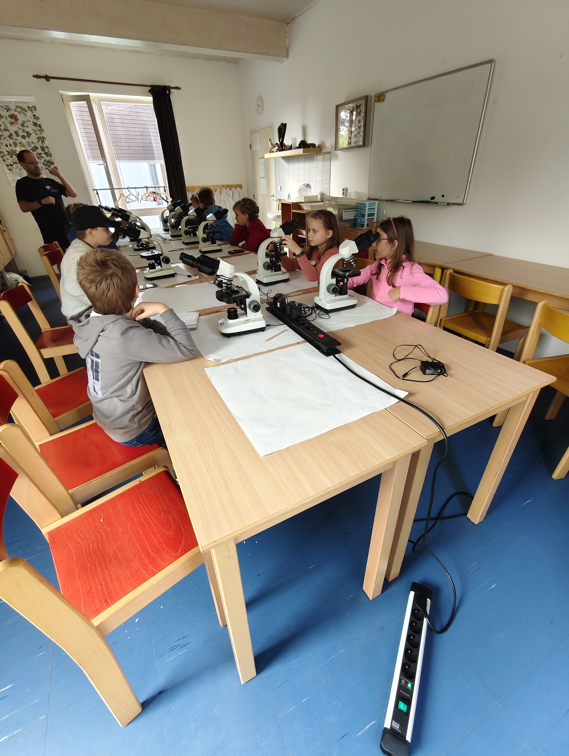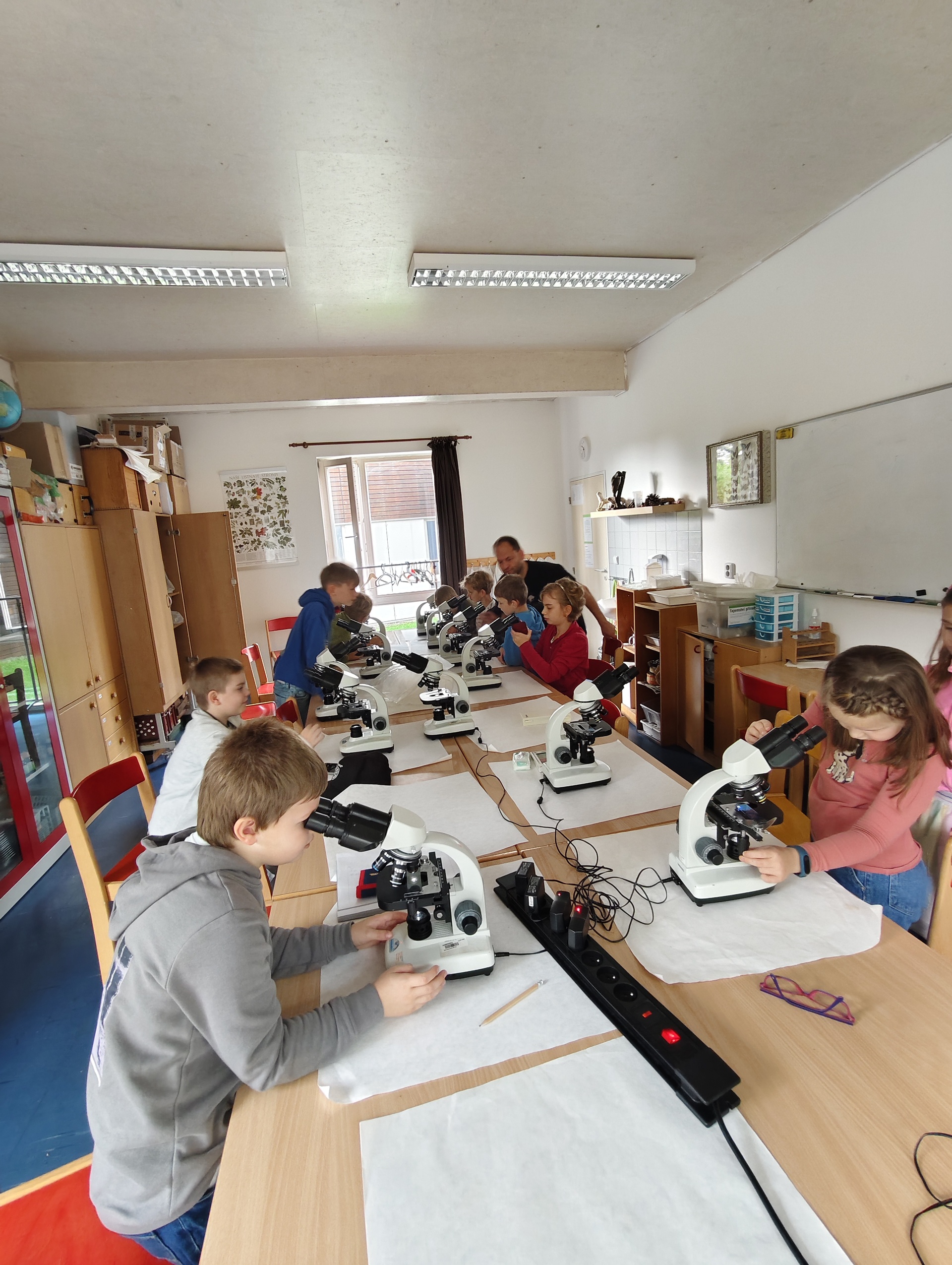 Navštívili jsme Stanici přírodovědců na Andělu v Praze. První skupina se věnovala práci s mikroskopem, kde si žáci mohli prohlédnout velmi zblízka sinice, veš, klíště nebo roztoče. Učili se pracovat s mikroskopem. Druhá skupina mezitím absolovovala procházku po areálu. kde se děti dozvěděly zajímavosti o plazech, papoušcích, hraboších, hlodavcích. malých opicích a klokanech. Později se skupiny vyměnily.